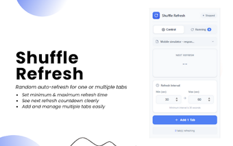 Eklenti, kullanıcıların yalnızca ihtiyaç duyduklarında aktif hale getirebileceği bir tasarıma sahiptir. Her bir sekme, kendi yenileme zamanlaması ile bağımsız olarak çalışırken, yaklaşan yenilemeler için sayım zamanlayıcıları da gösterir. Kullanıcılar, sekmeleri ekleyip kaldırabilir, başlatabilir veya durdurabilirler. Ayrıca, bir görsel sınır ile yenileme etkin olan sekmeleri kolayca tanımlamak mümkündür. Shuffle Refresh, şeffaflık ve gizlilik odaklı bir anlayışla tasarlanmıştır ve kullanıcıların kişisel verilerini toplamaz.